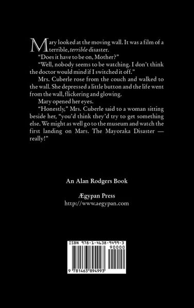Mary looked at the moving wall. It was a film of a terrible, terrible disaster. "Does it have to be on, Mother?" "Well, nobody seems to be watching. I don't think the doctor would mind if I switched it off." Mrs. Cuberle rose from the couch and walked to the wall. She depressed a little button and the life went from the wall, flickering and glowing. Mary opened her eyes. "Honestly," Mrs. Cuberle said to a woman sitting beside her, "you'd think they'd try to get something else. We might as well go to the museum and watch the first landing on Mars. The Mayoraka Disaster -- really!"