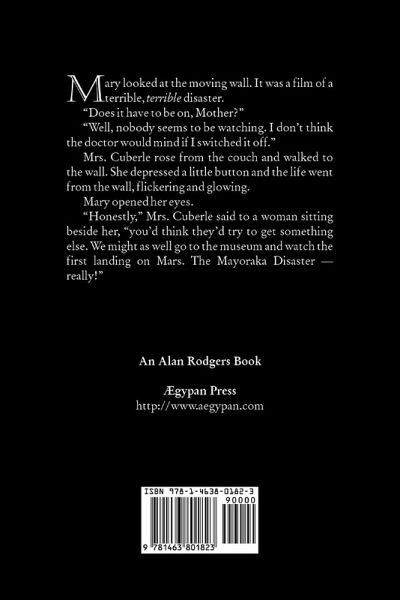 Mary looked at the moving wall. It was a film of a terrible, terrible disaster. "Does it have to be on, Mother?" "Well, nobody seems to be watching. I don't think the doctor would mind if I switched it off." Mrs. Cuberle rose from the couch and walked to the wall. She depressed a little button and the life went from the wall, flickering and glowing. Mary opened her eyes. "Honestly," Mrs. Cuberle said to a woman sitting beside her, "you'd think they'd try to get something else. We might as well go to the museum and watch the first landing on Mars. The Mayoraka Disaster -- really!"