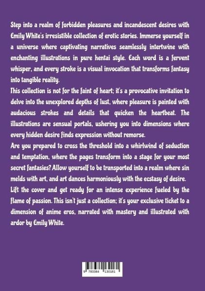 Indulge in an Unforgettable Journey of Passion and Temptation with Emily White's Erotic Masterpiece!Step into a captivating world where seduction knows no bounds in Emily White's latest collection of scintillating erotic stories, enriched with enchanting hentai illustrations. Immerse yourself in a universe where each word is a whispered promise, and every brushstroke is a visual enchantment that brings fantasies to life in pure hentai style.This collection is a daring invitation to explore the uncharted depths of desire, where pleasure unfolds with audacious strokes and details that will quicken your heartbeat. The carefully crafted hentai illustrations serve as sensuous portals, transporting you into dimensions where every hidden fantasy finds unabashed expression.What to Expect:- A Fusion of Literary Mastery and Sensual Artistry- Explicit and Alluring Hentai Illustrations- Stories That Explore the Boundaries of Lust and Fantasy- A Whirlwind of Seduction and TemptationThis isn'tjust a collection; it's your exclusive ticket to a dimension of hentai eros, meticulously narrated and ardently illustrated by Emily White. Lift the cover and prepare for an intense experience fueled by the flame of passion.Caution: This Collection is Not for the Faint of Heart. Are You Ready to Cross the Threshold?