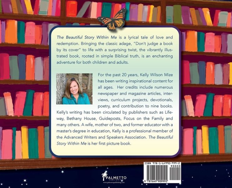 The Beautiful Story Within Me is a lyrical tale of love and redemption. Bringing the classic adage, "Don't judge a book by its cover" to life with a surprising twist, the vibrantly illustrated book, rooted in simple Biblical truth, is an enchanting adventure for both children and adults For anyone who has ever felt inadequate: Your story is beautiful. You are seen, known, and truly loved. Reviews: The Beautiful Story Within Me teaches children (and adults) that there is beauty and worth within each one of us, no matter what we look like on the outside. In a creative way, it shows how the Lord loves and values us, even when others don't. The book provides a hopeful message children truly need to hear. -May Patterson, Author, Blogger, and Speaker The Beautiful Story Within Me touches the heart and soul with each word. Reminding us that we are uniquely created and given special gifts, this book inspires and encourages. A great book to give as a gift. -Melissa Henderson, Author The Beautiful Story Within Me was a 2023 finalist for the Kerysso Press Ames Award for Children's Books.