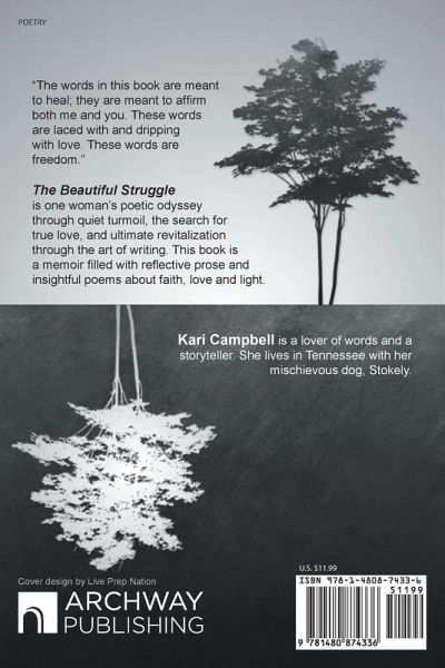 "The words in this book are meant to heal; they are meant to affirm both me and you. These words are laced with and dripping with love. These words are freedom." The Beautiful Struggle is one woman's poetic odyssey through quiet turmoil, the search for true love, and ultimate revitalization through the art of writing. This book is a memoir filled with reflective prose and insightful poems about faith, love and light.