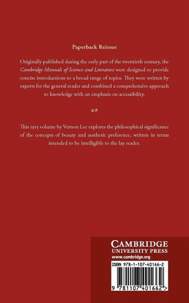 Originally published during the early part of the twentieth century, the Cambridge Manuals of Science and Literature were designed to provide concise introductions to a broad range of topics. They were written by experts for the general reader and combined a comprehensive approach to knowledge with an emphasis on accessibility. This 1913 volume by Vernon Lee explores the philosophical significance of the concepts of beauty and aesthetic preference, written in terms intended to be intelligible to the lay reader.