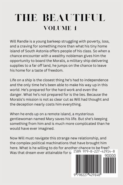 ¿¿¿¿¿ All he wants is freedom but lies and power will always keep him trapped ¿¿¿¿¿ In The Beautiful, young barkeep Will Randle dreams of escaping the poverty and limitations of South Astonia. When a wealthy nobleman offers him a spot on the Moralis, a military ship bound for a distant land, Will seizes the chance for freedom. Life aboard the ship brings hard work and danger, but also a taste of independence. However, the mission's hidden deceptions nearly cost him everything, thrusting Will into a perilous situation he never anticipated. Shipwrecked on a remote island, Will is saved by the mysterious Mary. As he navigates their complex relationship, he discovers that Mary harbors secrets of her own, making his new reality even more complicated. Caught in the island's political intrigue, Will faces a pivotal question: What is he willing to sacrifice for true freedom Immerse yourself in The Beautiful, where adventure and mystery intertwine in a story of hope, resilience, and the unyielding quest for a better life.