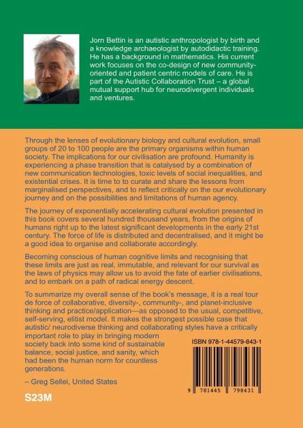 Through the lenses of evolutionary biology and cultural evolution, small groups of 20 to 100 people are the primary organisms within human society - in contrast to individuals, corporations, and nation states. The implications for our civilisation are profound. Humanity is experiencing a phase transition that is catalysed by a combination of new communication technologies, toxic levels of social inequalities, and existential crises. It is time to put ubiquitous global digital connectivity to good use, to curate and share the lessons from marginalised perspectives, and to reflect critically on the human evolutionary journey and on the possibilities and limitations of human agency. The journey of exponentially accelerating cultural evolution presented in this book covers several hundred thousand years, from the origins of humans right up to the latest significant developments in the early 21st century. Regardless of what route we choose, on this planet no one is in control. The force of life is distributed and decentralised, and it might be a good idea to organise and collaborate accordingly. Becoming conscious of human cognitive limits and recognising that these limits are just as real, immutable, and relevant for our survival as the laws of physics may allow us to avoid the fate of earlier civilisations, and to embark on a path of radical energy descent.
