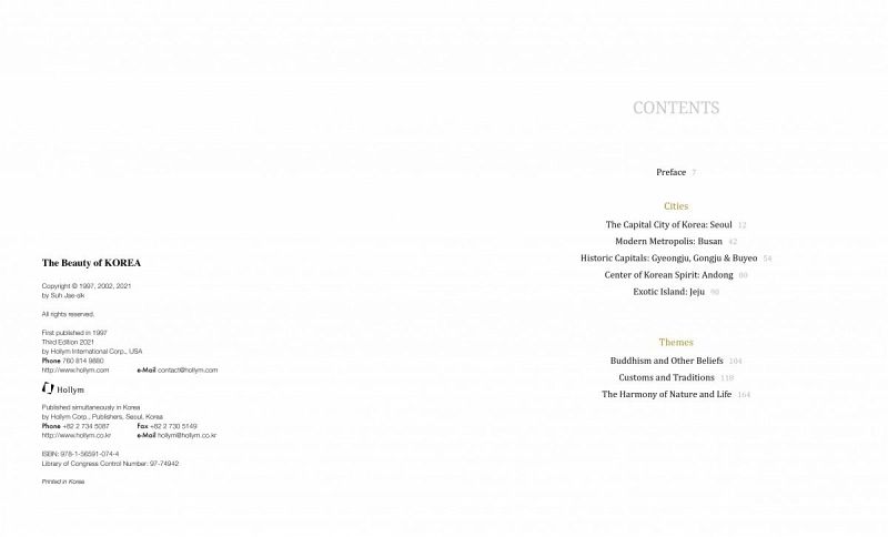 One of Hollym's best-selling books, The beauty of Korea captures so much of what makes Korea unique and visually spectacular. Within images that will leave an indelible mark in your mind's eye, photographer Suh Jae-sik takes you on a tour of his native country, from Seoul, the capital of Korea to the semi-tropical island of Jejudo, mountains, beaches, gardens, temples, and urban centers of South Korea. After the first edition in 1997 and second in 2010, the third revised edition is published in 2021, adding to the changed appearance of Korea.Inside the BookKorea is a beautiful country. Not only the natural environment, but also the Korean people who live hard in the land are beautiful. Korea has a long history of 5,000 years and retains numerous cultural heritages left by their ancestors. Many of the heritages were burned or lost due to foreign invasion, but nevertheless, Kore ans have lived steadfastly in keeping the culture and spirit.Korea, a small peninsula in Northeast Asia,did not succumb to numerous foreign invasions and rose again. With the persistence, sincerity, and sacrifice of the people, Korea now proudly rises to the ranks of advanced countries.This photo book contains beautiful landscapes, traditions, and people all over the land to properly convey the beauty of Korea. Although it does not cover all aspects of Korea, it would be satisfactory if this photo book could give readers a deeper understanding of Korea and Koreans.
