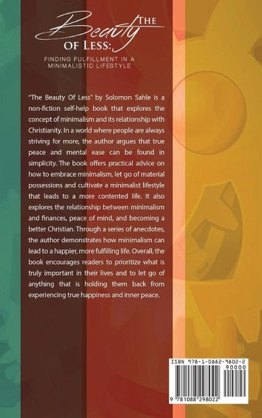 "The Beauty Of Less" by Solomon Sahle is a non-fiction self-help book that explores the concept of minimalism and its relationship with Christianity. In a world where people are always striving for more, the author argues that true peace and mental ease can be found in simplicity. The book offers practical advice on how to embrace minimalism, let go of material possessions and cultivate a minimalist lifestyle that leads to a more contented life. It also explores the relationship between minimalism and finances, peace of mind, and becoming a better Christian. Through a series of anecdotes, the author demonstrates how minimalism can lead to a happier, more fulfilling life. Overall, the book encourages readers to prioritize what is truly important in their lives and to let go of anything that is holding them back from experiencing true happiness and inner peace.