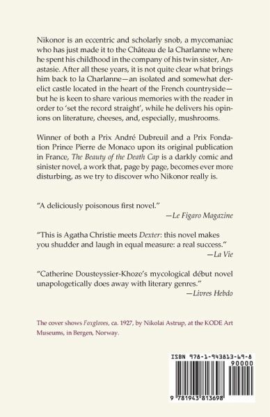 Nikonor is an eccentric and scholarly snob, a mycomaniac who has just made it to the Château de la Charlanne where he spent his childhood in the company of his twin sister, Anastasie. After all these years, it is not quite clear what brings him back to la Charlanne—an isolated and somewhat derelict castle located in the heart of the French countryside—but he is keen to share various memories with the reader in order to ‘set the record straight’, while he delivers his opinions on literature, cheeses, and, especially, mushrooms. Winner of both a Prix André Dubreuil and a Prix Fondation Prince Pierre de Monaco upon its original publication in France, The Beauty of the Death Cap is a darkly comic and sinister novel, a work that, page by page, becomes ever more disturbing, as we try to discover who Nikonor really is.