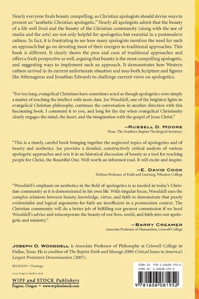 Nearly everyone finds beauty compelling, so Christian apologists should devise ways to present an "aesthetic Christian apologetic." Nearly all apologists admit that the beauty of a life well lived and the beauty of the Christian community (along with the use of media and the arts) are not only helpful for apologetics but essential in a postmodern culture. In fact, it is frustrating to see how many apologists mention the need for such an approach but go on devoting most of their energies to traditional approaches. This book is different. It clearly shows the pros and cons of traditional approaches and offers a fresh perspective as well, arguing that beauty is the most compelling apologetic, and suggesting ways to implement such an approach. It demonstrates how Western culture arrived in its current unfortunate situation and uses both Scripture and figures like Athenagoras and Jonathan Edwards to challenge current views on apologetics.