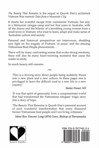 The Beauty That Remains charts the author's escape from communist Vietnam, her stay in a Malaysian refugee camp, and her first years in Australia, with all the drama and the hilarity of a bumbling young woman from a small town in Vietnam who tried to learn, adapt and make sense of Australian culture and society. Her boat drifted for a week in the open sea, got caught in a raging storm, survived two pirate attacks; she and her boat companions found themselves in one extraordinary situation to the next before they reached the Malaysian shores where they were allowed to land. Life in a Malaysian refugee camp was a far cry from the author’s privileged childhood. People lived in tents and crowded barracks. Strangers slept next to each other, separated only by an invisible demarcation line during the day and the flimsy wall of the mosquito nets at night. Tinned sardines and cooked rice might be tasty, but not if they were part of an unchanged camp’s ration. The hygienic condition was appalling. ‘Until I left the camp, I had forgotten what clean air smelled like,’ the author wrote. The physical hardship could not dampen the author’s sense of joy - the joy of being alive, of being able to sing love songs and cite love poems banned by the communists again for the first time. The author’s anecdotes of her early years in Australia reflected her overwhelming sense of love and gratitude towards a generous country and a compassionate people that gave her the precious gift of freedom and the chance to start a new life: ‘Back in Vietnam the communists chose the houses they liked. The house owners and their families were thrown out in the street. This happened to my family. Here in Australia, strangers came to our aid and gave us this beautifully furnished house - just like that. All we needed to do was to live in it. I was overwhelmed with gratitude and yet a shy "thank you" was all I could mutter.’ Personal and historical perspectives are interwoven, shedding new light on the tragedy of Vietnam ‘at peace’ and the senseless cruelty inflicted on the vanquished South Vietnamese by a revengeful communist force that was the root cause of the Vietnamese Boat People phenomenon. The author skilfully steers the narrative away from a gloomy path. A gentle sense of humour filters through the entire memoir, reminding readers of the lighter side of life, that grace comes with a deep sense of gratitude, and the wonderful healing power of human kindness. There will be many confronting scenes that evoke strong emotions, there will also be many heart-warming moments that cause the reader to smile. So much beauty still remains.