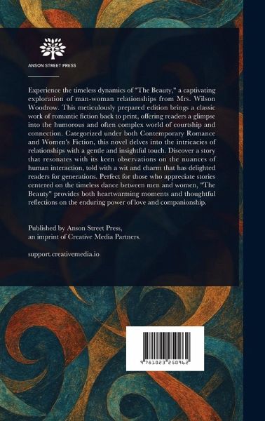 Experience the timeless dynamics of "The Beauty," a captivating exploration of man-woman relationships from Mrs. Wilson Woodrow. This meticulously prepared edition brings a classic work of romantic fiction back to print, offering readers a glimpse into the humorous and often complex world of courtship and connection. Categorized under both Contemporary Romance and Women's Fiction, this novel delves into the intricacies of relationships with a gentle and insightful touch. Discover a story that resonates with its keen observations on the nuances of human interaction, told with a wit and charm that has delighted readers for generations. Perfect for those who appreciate stories centered on the timeless dance between men and women, "The Beauty" provides both heartwarming moments and thoughtful reflections on the enduring power of love and companionship. This work has been selected by scholars as being culturally important, and is part of the knowledge base of civilization as we know it. This work is in the public domain in the United States of America, and possibly other nations. Within the United States, you may freely copy and distribute this work, as no entity (individual or corporate) has a copyright on the body of the work. Scholars believe, and we concur, that this work is important enough to be preserved, reproduced, and made generally available to the public. We appreciate your support of the preservation process, and thank you for being an important part of keeping this knowledge alive and relevant.