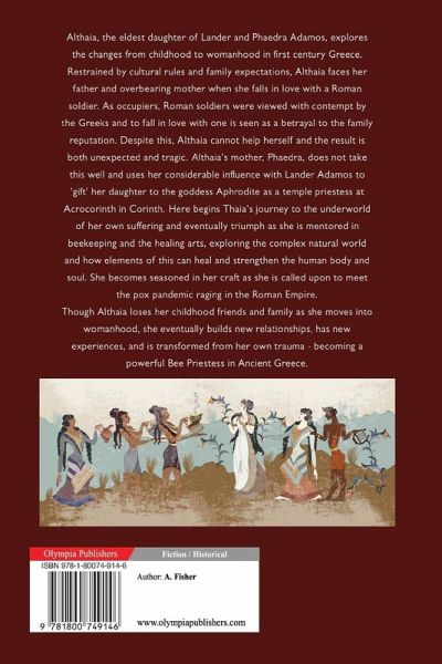 Althaia, the eldest daughter of Lander and Phaedra Adamos, explores the changes from childhood to womanhood in first century Greece. Restrained by cultural rules and family expectations, Althaia faces her father and overbearing mother when she falls in love with a Roman soldier. As occupiers, Roman soldiers were viewed with contempt by the Greeks and to fall in love with one is seen as a betrayal to the family reputation. Despite this, Althaia cannot help herself and the result is both unexpected and tragic. Althaia's mother, Phaedra, does not take this well and uses her considerable influence with Lander Adamos to 'gift' her daughter to the goddess Aphrodite as a temple priestess at Acrocorinth in Corinth. Here begins Thaia's journey to the underworld of her own suffering and eventually triumph as she is mentored in beekeeping and the healing arts, exploring the complex natural world and how elements of this can heal and strengthen the human body and soul. She becomes seasoned in her craft as she is called upon to meet the pox pandemic raging in the Roman Empire. Though Althaia loses her childhood friends and family as she moves into womanhood, she eventually builds new relationships, has new experiences, and is transformed from her own trauma - becoming a powerful Bee Priestess in Ancient Greece.