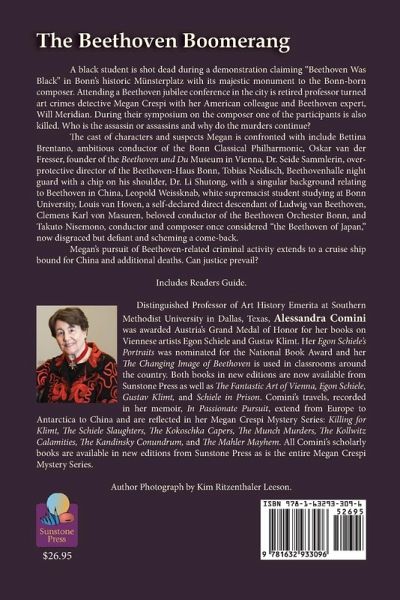 A black student is shot dead during a demonstration claiming "Beethoven Was Black" in Bonn's historic Münsterplatz with its majestic monument to the Bonn-born composer. Attending a Beethoven jubilee conference in the city is retired professor turned art crimes detective Megan Crespi with her American colleague and Beethoven expert, Will Meridian. During their symposium on the composer one of the participants is also killed. Who is the assassin or assassins and why do the murders continue? The cast of characters and suspects Megan is confronted with include Bettina Brentano, ambitious conductor of the Bonn Classical Philharmonic, Oskar van der Fresser, founder of the Beethoven und Du Museum in Vienna, Dr. Seide Sammlerin, over-protective director of the Beethoven-Haus Bonn, Tobias Neidisch, Beethovenhalle night guard with a chip on his shoulder, Dr. Li Shutong, with a singular background relating to Beethoven in China, Leopold Weissknab, white supremacist student studying at Bonn University, Louis van Hoven, a self-declared direct descendant of Ludwig van Beethoven, Clemens Karl von Masuren, beloved conductor of the Beethoven Orchester Bonn, and Takuto Nisemono, conductor and composer once considered "the Beethoven of Japan," now disgraced but defiant and scheming a come-back. Megan's pursuit of Beethoven-related criminal activity extends to a cruise ship bound for China and additional deaths. Can justice prevail? Includes Reading Guide.