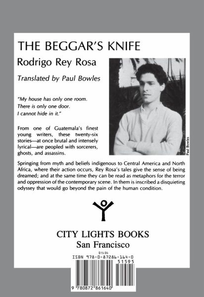 From one of Guatemala’s finest young writers, these twenty-six storiesat once brutal and intensely lyricalare peopled with sorcerers, ghosts, and assassins. Springing from myth and beliefs indigenous to Central America and North America, where their action occurs, Rey Rosa’s tales give the sense of being dreamed. At the same time they can be read as metaphors for the terror and oppression of years of warfare. Rodrigo Rey Rosa has based many of his writings and stories on legends and myths that are indigenous to Latin American as well as North Africa. A number of Rey Rosa's works have been translated into English, including; The Path Doubles Back (by Paul Bowles), Dust on her Tongue, "The Pelcari Project", The Beggar's Knife, The African Shore, and Severina. Along with his longer writings, he has also written a number of short stories that have been printed in college-level text books, such as "Worlds of Fiction, Second Edition" by Roberta Rubenstein and Charles R. Larson. A few of these short stories include The Proof, and The Good Cripple. Many of Rey Rosa's works have been translated into seven languages. In the early 1980s, Rey Rosa went to Morocco and became a literary protege of American expatriate writer Paul Bowles, who later translated several of Rey Rosa's works into English. When Bowles died in 1999, Rey Rosa became an executor of his literary estate.