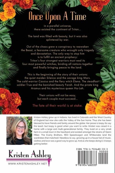 Once upon a time, in a parallel universe, there existed the continent of Triton... The land was filled with beauty, but it was also splintered by war. Out of the chaos grew a conspiracy to reawaken the Beast, a fearsome creature who wrought only tragedy and devastation. The only way to stop him is to fulfill an ancient prophecy: Triton's four strongest warriors must wed its four most powerful witches, binding all nations together and finally bringing peace to the land. This is the beginning of the story of their unions: the quiet maiden Silence and the savage king Mars. The cold warrior Cassius and the fiery witch Elena. The steadfast soldier True and the banished beauty Farah. And the pirate king Aramus and his mysterious queen Ha-Lah. Their unions will not be easy, but each couple must succeed... The fate of their world is at stake.