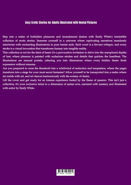 Indulge in an Unforgettable Journey of Passion and Temptation with Emily White's Erotic Masterpiece!Step into a captivating world where seduction knows no bounds in Emily White's latest collection of scintillating erotic stories, enriched with enchanting hentai illustrations. Immerse yourself in a universe where each word is a whispered promise, and every brushstroke is a visual enchantment that brings fantasies to life in pure hentai style.This collection is a daring invitation to explore the uncharted depths of desire, where pleasure unfolds with audacious strokes and details that will quicken your heartbeat. The carefully crafted hentai illustrations serve as sensuous portals, transporting you into dimensions where every hidden fantasy finds unabashed expression.What to Expect:- A Fusion of Literary Mastery and Sensual Artistry- Explicit and Alluring Hentai Illustrations- Stories That Explore the Boundaries of Lust and Fantasy- A Whirlwind of Seduction and TemptationThis isn'tjust a collection; it's your exclusive ticket to a dimension of hentai eros, meticulously narrated and ardently illustrated by Emily White. Lift the cover and prepare for an intense experience fueled by the flame of passion.Caution: This Collection is Not for the Faint of Heart. Are You Ready to Cross the Threshold?