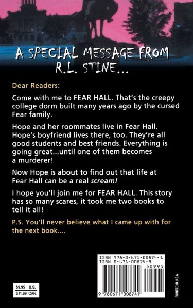 The first "Fear Street" set in college! College freshman Hope--and her roommates Jasmine, Eden, and Angel--are horrified when Darryl says he's murdered the boy Hope dated. But the police know the horrifying truth--the real killer is closer to Hope than she thinks.