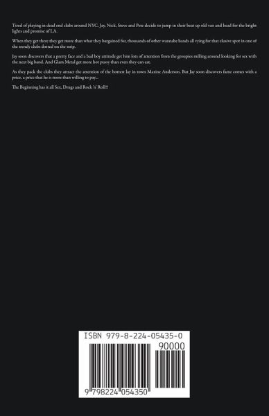 Tired of playing in dead end clubs around NYC, Jay, Nick, Steve and Pete decide to jump in their beat up old van and head for the bright lights and promise of LA. When they get there they get more than what they bargained for, thousands of other wannabe bands all vying for that elusive spot in one of the trendy clubs dotted on the strip. Jay soon discovers that a pretty face and a bad boy attitude get him lots of attention from the groupies milling around looking for sex with the next big band. And Glam Metal get more hot pussy than even they can eat. As they pack the clubs they attract the attention of the hottest lay in town Maxine Anderson. But Jay soon discovers fame comes with a price, a price that he is more than willing to pay... The Beginning has it all Sex, Drugs and Rock 'n' Roll!!