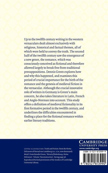 Up to the twelfth century writing in the western vernaculars dealt almost exclusively with religious, historical and factual themes, all of which were held to convey the truth. The second half of the twelfth century saw the emergence of a new genre, the romance, which was consciously conceived as fictional and therefore allowed largely to break free from traditional presuppositions. Dennis Green explores how and why this happened, and examines this period of crucial importance for the birth of the romance and the genesis of medieval fiction in the vernacular. Although the crucial innovative role of writers in Germany is Green's main concern, he also takes literature in Latin, French and Anglo-Norman into account. This study offers a definition of medieval fictionality in its first formative period in the twelfth century, and underlines the difficulties encountered in finding a place for the fictional romance within earlier literary traditions.