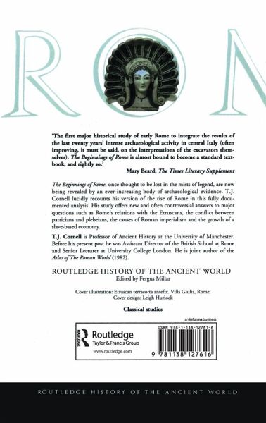 Incorporating up-to-date archaeological evidence, and current methodological debates, Tim Cornell provides a lucid and authoritative account of Rome's beginnings and rise in a comprehensive text that will be the standard work on the subject.