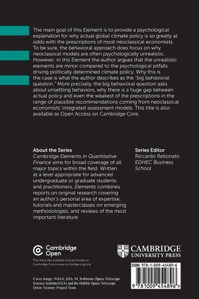 The main goal of this Element is to provide a psychological explanation for why actual global climate policy is so much at odds with the prescriptions of most neoclassical economists. This title is also available as Open Access on Cambridge Core.
