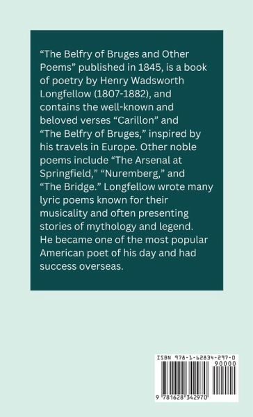 Unique Element * About the Author / Historical Context * A POETRY COLLECTION by HENRY WADSWORTH LONGFELLOW. The Belfry of Bruges and Other PoemsI by AMERICAN author HENRY WADSWORTH LONGFELLOW (1807-1882) is a collection of poems first published in 1845 in the UNITED STATES. A collection of classic POETRY containing the popular "The Arsenal at Springfield," "Nuremberg," "The Arrow and the Song," and "The Bridge," among other notable verses. Longfellow wrote many lyric poems known for their musicality and often presenting stories of mythology and legend. He was among the most popular American poet of his day and had success overseas. Sneak Peak I shot an arrow into the air, It fell to earth, I knew not where;For, so swiftly it flew, the sightCould not follow it in its flight. Title Details * Originally published in 1845 * Poetry collection