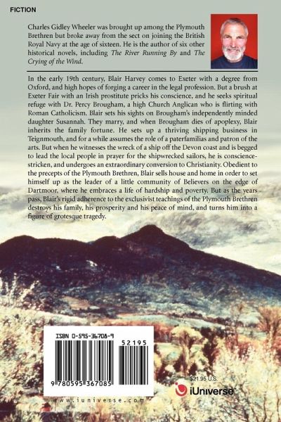 In the early 19th century, Blair Harvey comes to Exeter with a degree from Oxford, and high hopes of forging a career in the legal profession. But a brush at Exeter Fair with an Irish prostitute pricks his conscience, and he seeks spiritual refuge with Dr. Percy Brougham, a high Church Anglican who is flirting with Roman Catholicism. Blair sets his sights on Brougham's independently minded daughter Susannah. They marry, and when Brougham dies of apoplexy, Blair inherits the family fortune. He sets up a thriving shipping business in Teignmouth, and for a while assumes the role of a paterfamilias and patron of the arts. But when he witnesses the wreck of a ship off the Devon coast and is begged to lead the local people in prayer for the shipwrecked sailors, he is conscience-stricken, and undergoes an extraordinary conversion to Christianity. Obedient to the precepts of the Plymouth Brethren, Blair sells house and home in order to set himself up as the leader of a little community of Believers on the edge of Dartmoor, where he embraces a life of hardship and poverty. But as the years pass, Blair's rigid adherence to the exclusivist teachings of the Plymouth Brethren destroys his family, his prosperity and his peace of mind, and turns him into a figure of grotesque tragedy.