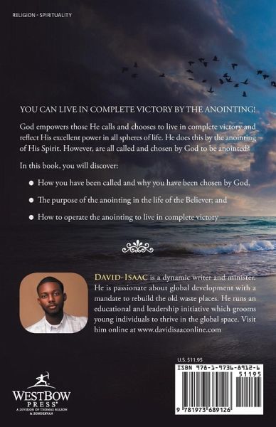 YOU CAN LIVE IN COMPLETE VICTORY BY THE ANOINTING! God empowers those He calls and chooses to live in complete victory and reflect His excellent power in all spheres of life. He does this by the anointing of His Spirit. However, are all called and chosen by God to be anointed? In this book, you will discover: How you have been called and why you have been chosen by God, The purpose of the anointing in the life of the Believer; and How to operate the anointing to live in complete victory