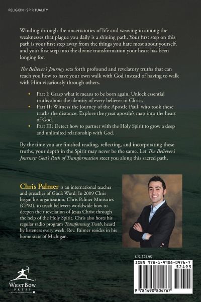 Winding through the uncertainties of life and weaving in among the weaknesses that plague you daily is a shining path. Your first step on this path is your first step away from the things you hate most about yourself, and your first step into the divine transformation your heart has been longing for. The Believer's Journey sets forth profound and revelatory truths that can teach you how to have your own walk with God instead of having to walk with Him vicariously through others. ¿ Part I: Grasp what it means to be born again. Unlock essential truths about the identity of every believer in Christ. ¿ Part II: Witness the journey of the Apostle Paul, who took these truths the distance. Explore the great apostle's map into the heart of God. ¿ Part III: Detect how to partner with the Holy Spirit to grow a deep and unlimited relationship with God. By the time you are finished reading, reflecting, and incorporating these truths, your depth in the Spirit may never be the same. Let The Believer's Journey: God's Path of Transformation steer you along this sacred path.
