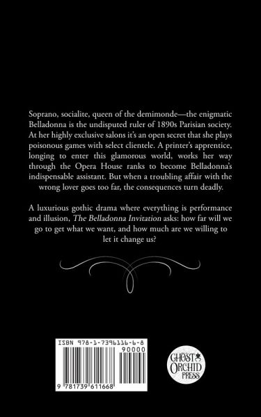 Soprano, socialite, queen of the demimonde-the enigmatic Belladonna is the undisputed ruler of 1890s Parisian society. At her highly exclusive salons it's an open secret that she plays poisonous games with select clientele. A printer's apprentice, longing to enter this glamorous world, works her way through the Opera House ranks to become Belladonna's indispensable assistant. But when a troubling affair with the wrong lover goes too far, the consequences turn deadly. A luxurious gothic drama where everything is performance and illusion, The Belladonna Invitation asks: how far will we go to get what we want, and how much are we willing to let it change us?