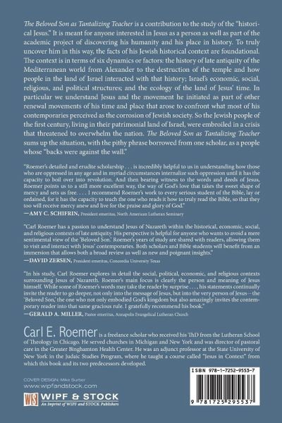 The Beloved Son as Tantalizing Teacher is a contribution to the study of the ""historical Jesus."" It is meant for anyone interested in Jesus as a person as well as part of the academic project of discovering his humanity and his place in history. To truly uncover him in this way, the facts of his Jewish historical context are foundational. The context is in terms of six dynamics or factors: the history of late antiquity of the Mediterranean world from Alexander to the destruction of the temple and how people in the land of Israel interacted with that history; Israel's economic, social, religious, and political structures; and the ecology of the land of Jesus' time. In particular we understand Jesus and the movement he initiated as part of other renewal movements of his time and place that arose to confront what most of his contemporaries perceived as the corrosion of Jewish society. So the Jewish people of the first century, living in their patrimonial land of Israel, were embroiled in a crisis that threatened to overwhelm the nation. The Beloved Son as Tantalizing Teacher sums up the situation, with the pithy phrase borrowed from one scholar, as a people whose ""backs were against the wall.""