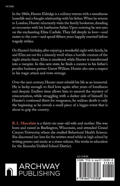 In the 1860s, Hunter Eldridge is a military veteran with a tumultuous homelife and a fraught relationship with his father. When he returns to London, Hunter reluctantly visits the family bookstore, dreading an encounter with his loathsome father. Upon entering he sets eyes on the enchanting Eliza Carlisle. They fall deeply in love-soul mates to the core-and spend fifteen years happily married before tragedy strikes. On Hunter's birthday, after enjoying a wonderful night with family, he and Eliza are out for a leisurely stroll when a horrific creature of the night attacks them. Eliza is murdered, while Hunter is transformed into a vampire. In this new state, he finds a mentor in his father's peculiar business partner Garret Wilkins. Hunter also eyes a suspect in his tragic attack and vows revenge. Over the next century, Hunter must rebuild his life as an immortal. He is lucky enough to find love again after years of loneliness and despair. Endless time allows him to unravel the mystery of reincarnation, while struggling with a darker side of himself. In Hunter's continued thirst for vengeance, he realizes death is only the beginning as he reveals a small piece of a bigger event that is about to grip the country.