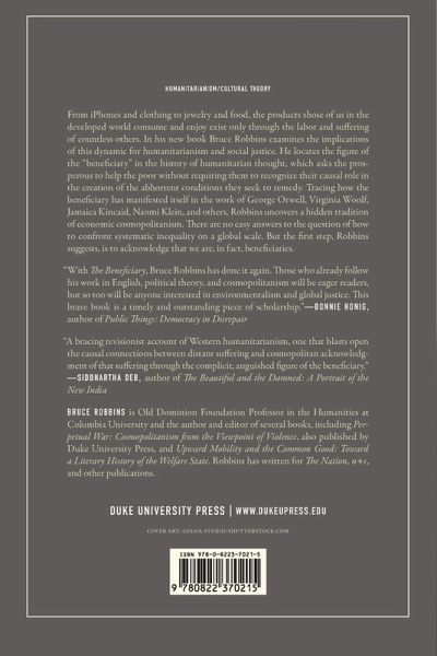 From iPhones and clothing to jewelry and food, the products those of us in the developed world consume and enjoy exist only through the labor and suffering of countless others. In his new book Bruce Robbins examines the implications of this dynamic for humanitarianism and social justice. He locates the figure of the "beneficiary" in the history of humanitarian thought, which asks the prosperous to help the poor without requiring them to recognize their causal role in the creation of the abhorrent conditions they seek to remedy. Tracing how the beneficiary has manifested itself in the work of George Orwell, Virginia Woolf, Jamaica Kincaid, Naomi Klein, and others, Robbins uncovers a hidden tradition of economic cosmopolitanism. There are no easy answers to the question of how to confront systematic inequality on a global scale. But the first step, Robbins suggests, is to acknowledge that we are, in fact, beneficiaries.