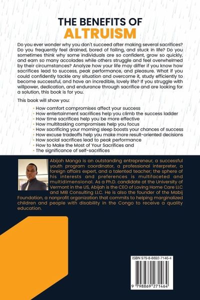 Do you ever wonder why you don't succeed after making several sacrifices? Do you frequently feel drained, bored of failing, and stuck in life? Do you sometimes wonder why some individuals are so confident, proliferate, and earn so many accolades while others struggle and feel overwhelmed by their circumstances? Analyze how your life may differ if you know how sacrifices lead to success, peak performance, and pleasure. What if you could confidently tackle and overcome any situation, study efficiently to succeed, and have an incredible, lovely life? If you struggle with willpower, dedication, and endurance through sacrifice and are looking for a solution, this book is for you. This book will show you How sometimes comfort compromises affect people's success, How entertainment sacrifices can help you climb the success ladder, How social sacrifices can lead to peak performance, How time sacrifices can help to be more effective, How sacrificing your morning sleep can boost chances of success and, the significance of altruism.