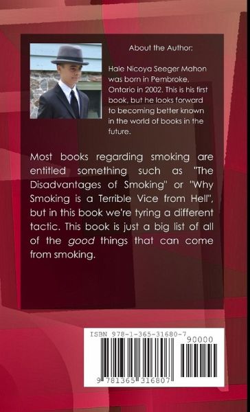 Most books regarding smoking are entitled something such as "The Disadvantages of Smoking" or "Why Smoking is a Terrible Vice from Hell", but in this book, we're trying a different tactic. This book is just a big list of all of the good things that can come from smoking.