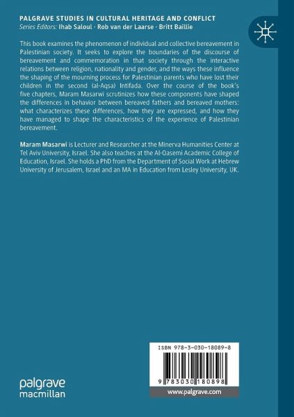 This book examines the phenomenon of individual and collective bereavement in Palestinian society. It seeks to explore the boundaries of the discourse of bereavement and commemoration in that society through the interactive relations between religion, nationality and gender, and the ways these influence the shaping of the mourning process for Palestinian parents who have lost their children in the second (al-Aqsa) Intifada. Over the course of the book's five chapters, Maram Masarwi scrutinizes how these components have shaped the differences in behavior between bereaved fathers and bereaved mothers: what characterizes these differences, how they are expressed, and how they have managed to shape the characteristics of the experience of Palestinian bereavement.