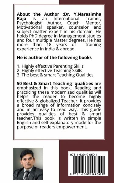 "Its true that every effort is not converted in to success. But it is equally true that success does not come without Effort". This quote has inspired the author to keep his maximum efforts to write this book. In this book 50 Best & Smart Teaching qualities are emphasized. Reading and practicing these modernised qualities will help's the reader to become highly effective & globalised Teacher. It provides a broad range of information concisely and in an easy to read way. This guide provides qualtities of best & smart teacher. I assure, if these principles are applied in our practical life situation, we can defiantly view positive results with is fast span of time. This book is written in simple English and self explanatory mode for the purpose of readers empowerment. Never think I have nothing,,,,Never think I have everything,,,,,But, always think I have something & I can achive anything