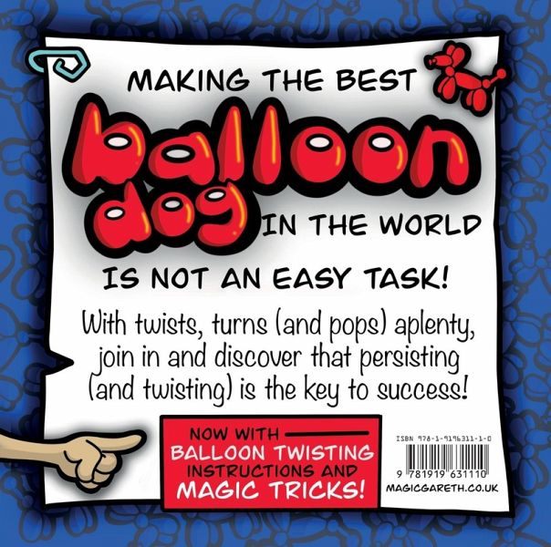 'Making the best balloon dog in the world is not an easy task! With twists, turns (and pops) aplenty, join in and discover that persisting (and twisting) is the key to success!' A Fun Balloon Dog Picture Book for kids and children. Kids picture book for ages 3+. Use your imagination and perseverance to make your very own balloon dog!Children's Graphic Novel including balloon modelling instructions for beginners _________________________ From the Mind of Magic Gareth - British magician, Balloosionist and entertainer from Scotland with over 50k TikTok followers. Author of 3 books and full time funny guy! ¿¿¿¿ 'Written and illustrated by me, 'The Best Balloon Dog in the World' is a cute, colourful and informative picture book for ages 3-8 with an underlying message: the importance of perseverance! 'Perseverance' is something all children and young people need to know - try, try and try again. Inside the book here are interactive elements, bold colourful images and twists and turns all over the place!' _________________________ The book is 34 pages of colourful, interactive fun for ages 3 and up When you finish reading, there is a TOP SECRET QR code which takes you to bespoke instructions to making your very own Balloon Dog!