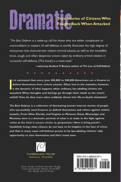 It is estimated that every year 400,000 to 500,000 Americans use a firearm to defend themselves from violent attacks. Often lost in the statistics, however, is the dynamic of what happens when ordinary, law-abiding citizens are assaulted. What thoughts and feelings go through their minds as the events unfold? How do they react when suddenly thrust into life-or-death situations? The Best Defense is a collection of fascinating human interest stories of people who successfully used firearms to defend themselves and others against violent assaults. From Ohio, Florida, and Virginia to Missouri, Texas, Mississippi, and Montana, here is a dramatic portrait of what is at stake in the fight against crime at the level it occurs: victim vs. perpetrator. Here is living proof--thankfully living--that citizens do not have to be helpless in the face of crime and that in many cases self-defense proves to be law-abiding citizens' only opportunity to save themselves and their loved ones.