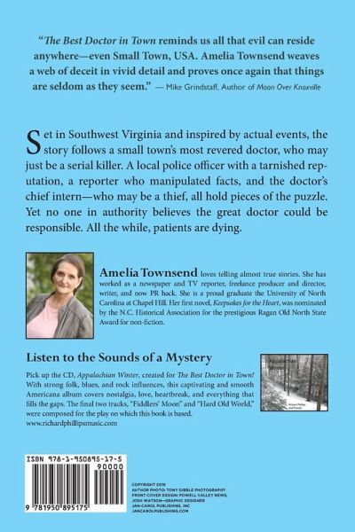 Set in Southwest Virginia and inspired by actual events and the story of the small town's most revered doctor, who may just be a serial killer. A local police officer with a tarnished reputation, a reporter who manipulated facts, and the doctor's chief intern, who may be a thief, have pieces of the puzzle. Yet no one in authority believes the great doctor could be responsible. All the while, patients are dying.