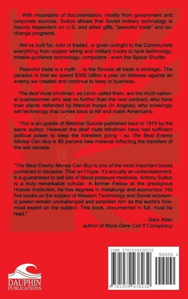 With mountains of documentation, mostly from government and corporate sources, Sutton shows that Soviet military technology is heavily dependent on U.S. and allied gifts, "peaceful trade" and exchange programs. We've built for, sold or traded, or given outright to the Communists everything from copper wiring and military trucks to tank technology, missile guidance technology, computers - even the Space Shuttle. Peaceful trade is a myth ... to the Soviets all trade is strategic. The paradox is that we spend $300 billion a year on a defense against an enemy we created and continue to keep in business. The deaf mute blindmen, as Lenin called them, are the multi-national businessmen who see no further than the next contract, who have their plants defended by Marxist troops (in Angola); who knowingly sell technology that comes back to kill and maim Americans.