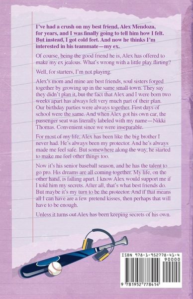 I've had a crush on my best friend, Alex Mendoza, for years, and I was finally going to tell him how I felt. But instead, I got cold feet. And now he thinks I'm interested in his teammate-my ex. Of course, being the good friend he is, Alex has offered to make my ex jealous. What's wrong with a little play flirting? Well, for starters, I'm not playing. Alex's mom and mine are best friends, soul sisters forged together by growing up in the same small town. They say they didn't plan it, but the fact that Alex and I were born two weeks apart has always felt very much part of their plan. Our birthday parties were always together. First days of school were the same. And when Alex got his own car, the passenger seat was literally labeled with my name-Nikki Thomas. Convenient since we were inseparable. For most of my life, Alex has been like the big brother I never had. He's always been my protector. And he's always made me feel safe. But somewhere along the way, he started to make me feel other things too. Now it's his senior baseball season, and he has the talent to go pro. His dreams are all coming together. My life, on the other hand, is falling apart. I know Alex would support me if I told him my secrets. After all, that's what best friends do. But maybe it's my turn to be the protector. And if that means all I can have are a few pretend kisses, then perhaps that will have to be enough. Unless it turns out Alex has been keeping secrets of his own.
