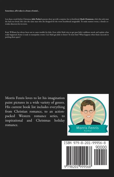 Sometimes, all it takes is a frame of mind… Less than a week before Christmas, Julie Parker's parents show up with a surprise; her ex-boyfriend, Mark Clemmons, who's the only man she had ever loved. He's also the same man who she dropped for the worst heartbreak imaginable. To make matters worse, a female co-worker discovers he's in town. Katie Williams has always been out to cause trouble for Julie. Even while Mark tries to get past Julie's stubborn streak and explain what really happened, Katie is ready to manipulate events. Can Mark get Julie to listen? To trust him? What happens when Katie succeeds in pushing them apart?