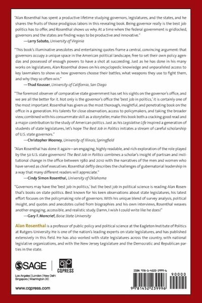 Governors-both in, and now out of, office-see the job as the best in politics. Why is that? Drawing on a survey of former governors, personal interviews, as well as gubernatorial memoirs and biographies, Rosenthal shows students how and why governors succeed as policy leaders and makes a case as to why some governors are better at leveraging the institutional advantages of the office.