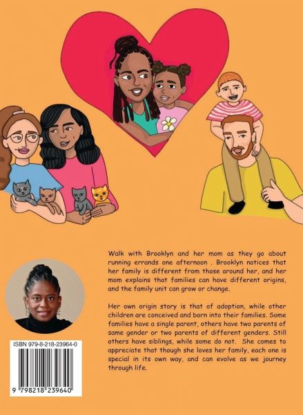 Walk with Brooklyn and her mom as they go about running errands one afternoon . Brooklyn notices that her family is different from those around her, and her mom explains that families can have different origins, and the family unit can grow or change. Her own origin story is that of adoption, while other children are conceived and born into their families. Some families have a single parent, others have two parents of same gender or two parents of different genders. Still others have siblings, while some don't. She comes to appreciate that though she loves her family, each one is special in its own way, and can evolve as we journey through life.
