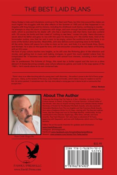 Henry Dodge's trials and tribulations continue in The Best Laid Plans, but this time around the stakes are much higher! He struggles with the aftereffects of the Summer of 1985 and all that happened in Los Angeles with King George and his minions, including his childhood crush Danny, confessing to murder.¿ He attempts to stop the storm of memories with drugs, and soon enough becomes addicted to crystal meth, which is provided by his dealer Jeff, who has a duplicitous side that Henry must also contend with.¿¿ Of course, his family and their creed of "nothing to see here," comes into play. Henry discovers a secret about his father and goes-to-toe with him upon his discovery of it. His mother Kate, tired of the homemaker routine, now that her nest is soon to be empty, enters the workforce and lets Henry in on some of the family's dirty laundry. Meanwhile, John also delivers some surprising news to the family.¿¿¿¿ All the while, Henry still yearns for a tribe to claim as his own, and finds it in new friends Nina, Derek, and Michael. He is also on the quest for love, with one encounter unraveling the very fabric of his being with an HIV scare. His love of pop culture reaches new heights, as he still uses the flickering glow of the television and movies, and getting lost in music and making mixtapes, to grant him much-needed solace from his complicated life.¿It becomes even more complex with several love interests, including a most unlikely candidate.¿¿ Like its predecessor The Scheme of Things, this novel has a thriller aspect and the turn-on-a-dime element of drama becoming comedy, pop culture references galore, and nods to the soap operas¿of the 1980's. Yet it stands alone as its own contained tale.