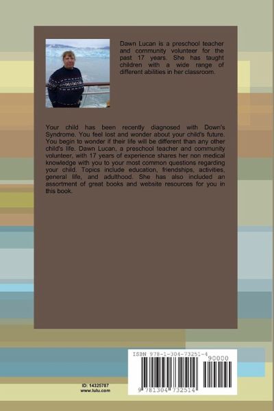 Your child has been recently diagnosed with Down's Syndrome. You feel lost and wonder about your child's future. You begin to wonder if their life will be different than any other child's life. Dawn Lucan, a preschool teacher and community volunteer, with 17 years of experience shares her non medical knowledge with you to your most common questions regarding your child. Topics include education, friendships, activities, general life, and adulthood. She has also included an assortment of great books and website resources for you in this book.