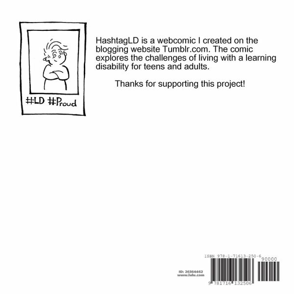 HashtagLD is a webcomic I created on the blogging website Tumblr.com. The comic explores the challenges of living with a learning disability for teens and adults, which came out weekly from March 2016, to November 2017. The comic has about one hundred entries, but this collection only contains what I feel is the best thirty.