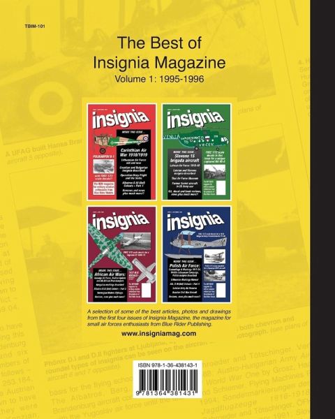 This 68 page full colour paperback features a selection of some of the best articles, photos and drawings from the first four issues of Insignia Magazine, the magazine for small air forces enthusiasts from Blue Rider Publishing. A further four volumes are planned.