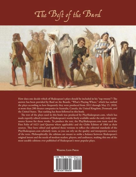How does one decide which of Shakespeare's plays should be included in his "top twenty"? The answer has been provided by Bard on the Boards, "What's Playing Where," which has ranked the plays according to how frequently they were produced from 2012 through May 25, 2020, at more than 200 theater companies in Australia, Canada, the United Kingdom, Denmark, and the United States. That ranking has been followed in this book. The text of the plays used in this book was produced by PlayShakespeare.com, which has made expertly edited versions of Shakespeare's works freely available under the only truly open-source license for those works. That means anyone can use them in any way without charge, so you can freely produce the plays without worrying about whether or not you are violating someone's copyright or license agreement. To produce the text, the PlayShakespeare.com team used the First Folio of 1623 (and Quartos where applicable) and the Globe Edition of 1866 as their sources. They have edited and updated those versions to reflect the editorial standards of the PlayShakespeare.com scholarly team, so you can rely on the quality and interpretive accuracy of the texts. The overarching principles used were: * Clarity: If the playwright's intent was clear, reinforce it. If ambiguous, clarify it. * Modern: Use modern spellings with a light touch and modern scholarly interpretations. * Playability: Is the line performable by an actor? * Integrity: Stay as faithful as possible to the source material and commonly accepted scholarly interpretations. * Inclusive: In cases where one edition omits text found in another, both texts are included. Philosophically, all of this is meant to strike a balance between Shakespeare's original intent and the needs of modern readers, players, and audiences, making this one of the most useable editions ever published of Shakespeare's most popular plays. This beautifully designed, large-format, printed version of the plays features the following: * Running heads that include the play's title, act, and scene for easy reference. * Fully spelled out speakers' names in boldface type for quick identification. * Text indentation of partial lines to preserve blank-verse meter. * Text set in the sturdy, modern, highly legible Bookerly typeface, making reading a pleasure. * Acid-free, archival-quality paper for long-lasting durability. Ron Severdia, the founder of PlayShakespeare.com notes, "Since the creation of these editions in 2005, we've taken many suggestions from scholars, teachers, theatre professionals, and aficionados all over the world to improve them. We consider them 'living' documents that have been 'forked', reused, edited, hacked, and much more. They're used as the basis for performances at theatres like the Oregon Shakespeare Festival, Prague Shakespeare Company, and in countless classrooms. They're also used in the popular Shakespeare Pro apps for Apple and Android devices, which have currently been downloaded more than 15 million times. They've even been used in various open-source technology projects to search, analyze, and visualize Shakespeare's works in new ways. The possibilities are limitless. What started as a website project has become an incredible way to empower Shakespeare lovers all over the world."
