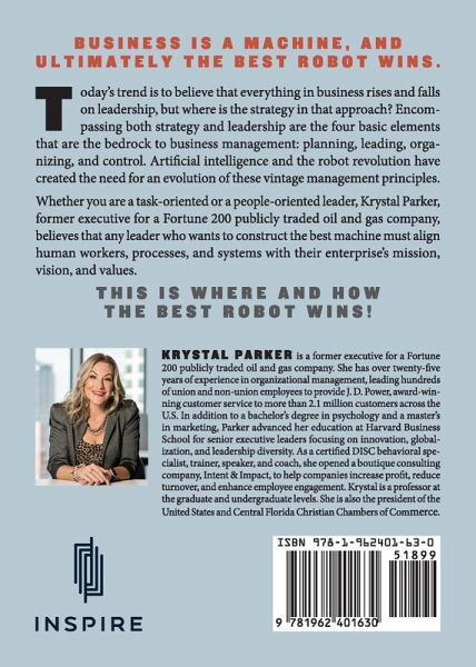 BUSINESS IS A MACHINE, AND ULTIMATELY THE BEST ROBOT WINS. Today's trend is to believe that everything in business rises and falls on leadership, but where is the strategy in that approach? Encompassing both strategy and leadership are the four basic elements that are the bedrock to business management: planning, leading, organizing, and control. Artificial intelligence and the robot revolution have created the need for an evolution of these vintage management principles. Whether you are a task-oriented or a people-oriented leader, Krystal Parker, former executive for a Fortune 200 publicly traded oil and gas company, believes that any leader who wants to construct the best machine must align human workers, processes, and systems with their enterprise's mission, vision, and values.THIS IS WHERE AND HOW THE BEST ROBOT WINS!